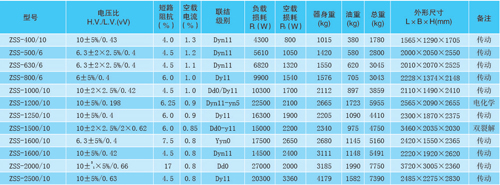 注:上表中變壓器型號為我公司典型產品,其他產品以合同為準;